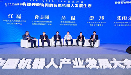 圆桌对话由哈尔滨工业大学赵杰教授主持,国家地方共建人形机器人创新中心首席科学家江磊、广州瑞松智能科技股份有限公司董事长孙志强、南京埃斯顿自动化股份有限公司总经理吴侃、埃夫特智能机器人股份有限公司董事长游玮、苏州绿的谐波传动科技股份有限公司总经理张雨文,围绕大会主题,就“十五五”如何构建开放协同的智能机器人生态展开交流讨论。