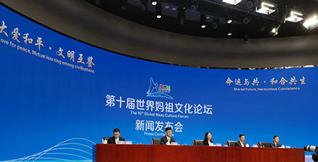 10月19日,第十届世界妈祖文化论坛新闻发布会在北京举行,论坛由文化和旅游部、自然资源部、中国社会科学院、澳门特别行政区政府和福建省人民政府共同主办。